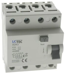 Prezentowany produkt to wyłącznik różnicowoprądowy serii AUR3 marki LC TEC Plus. W przypadku prądu upływowego wyłącznik automatycznie przerwie obwód, zapobiegając porażeniu ludzi i uszkodzeniom sprzętu. Ponadto wyłączniki te posiadają znamionową zwarciową zdolność łączeniową o wartości 10kA. Oznacza to wyższą wytrzymałość styków, zdolność gaszenia łuku itp. w czasie zwarć niż u wyłączników nadprądowych 6kA.