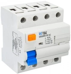 Wyłącznik różnicowoprądowy 4P 63A 30mA typ AC LC‑Tec EBS9RN‑4P/30/63/AC LCTEC‑EBS9RN‑4P/30/6