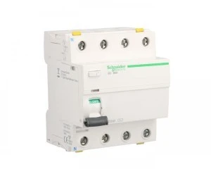 Wyłącznik różnicowoprądowy iID-80-4-300-AC 80A 4-biegunowy 300mA typ AC ,o numerze A9Z14480 Podwójne zaciski - możliwość bezpośredniego podłączenia dwóch przewodów o różnych przekrojach. Optyczny wskaźnik Visi-Trip wyzwolenia elektrycznego, biało-czerwony. Możliwość demontażu pojedynczego aparatu bez potrzeby zdejmowania szyny łączeniowej. Zdjemowanie z szyny DIN bez użycia narzędzi. Możliwość sprawdzania poprawności działania przyciskiem kontrolnym "T" jedynie raz do roku, przez pierwsze 7 lat użytkowania. Tor N umieszony po lewej stronie, ułatwia oszynowanie z wyłącznikami nadprądowymi.