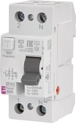 - Typ F - Wyłączniki typu F są wyłącznikami typu A o rozszerzonej zdolności detekcji prądów różnicowych. Wykrywają poprawnie składową stałą o wartości do 10 mA (typ A 6 mA). Dodatkowo mają zdolność detekcji prądu różnicowego odkształconego zawierającego wyższe harmoniczne.