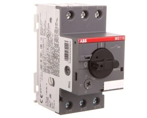 Wyłącznik silnikowy MS116-1.6 to ręczne urządzenie trójbiegunowe do załączania i ochrony silników trójfazowych o nastawie prądu 1,0–1,6 A. Przeznaczony do instalacji na szynie DIN w rozdzielnicach sterowniczych i napędowych.