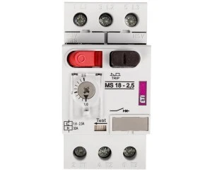 Firma ETI-POLAM Sp. z o.o. powstała w 1997 r. i jest jednym z wiodących producentów wyłączników nadprądowych i ochronnych różnicowoprądowych, bezpieczników topikowych wszystkich wielkości i charakterystyk, zarówno niskiego, jak i średniego napięcia. Powyższy wyłącznik silnikowy jest 3-biegunowy. Urządzenie jest mocowane na stałe i posiada czułość na zanik fazy. Wyłącznik posiada termomagnetyczny sposób wyzwalania. Do obwodu głównego należy podłączyć go przy pomocy połączenia śrubowego. Zakres nastawy bezzwłocznego wyzwalacza zwarciowego waha się między 27,5 A do 32,5 A. Zakres nastawy wyzwalacza przeciążeniowego wynosi od 1,6 A do 2,5 A. Znamionowa moc pracy przy AC-3 i napięciu 400 V wynosi 0,75 kW. Znamionowa zwarciowa zdolność łączeniowa przy napięciu 400 V AC wynosi 50 kA, natomiast znamionowy prąd ciągły jest równy 2,5 A. Wyłącznik posiada zintegrowany wyzwalacz podnapięciowy. Charakteryzuje go stopień ochrony IP20. Urządzenie nie posiada ochrony przed warunkami atmosferycznymi, dlatego nie zaleca się używania go na zewnątrz, gdzie może być narażony zarówno na wilgoć, jak i deszcz. Wyłącznik będzie jednak chroniony przed działaniem ciał obcych o średnicy 12,5 mm.