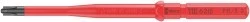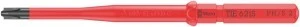 Trzpień VDE do rękojeści z uchwytem trzpieni/systemu trzpieni wymiennych Kraftform Kompakt. Połączenie profilu z nacięciem prostym (z rowkiem) i Phillips, stosowanego przede wszystkim w zaciskach szeregowych, skrzynkach bezpieczników, przełącznikach i przekaźnikach. Błyskawiczna wymiana trzpienia bez użycia specjalnych narzędzi. Każde narzędzie testowane pojedynczo zgodnie z IEC 60900. Indywidualnie kontrolowana izolacja pod napięciem 10000 V gwarantuje bezpieczeństwo pracy pod napięciem 1000 V. Zredukowana średnica trzpienia ze zintegrowaną izolacją ochronną umożliwia dostęp do głęboko położonych elementów śrubowych i sprężynowych. Końcówka Black Point gwarantuje dokładne dopasowanie do gniazda śruby oraz zwiększoną odporność na korozję. Z systemem wyszukiwania narzędzi Wera "Take it easy": z oznaczeniem kolorystycznym według profilu i laserowym oznaczeniem rozmiaru. Sześciokątny profil zabezpieczający przed przypadkowym stoczeniem się narzędzia z miejsca pracy.