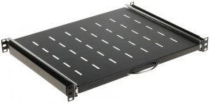 Półka wysuwana 19 1U głęb. 370mm, kolor czarny, 4 punkty mocowania