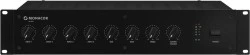 Wzmacniacz miksujący PA, mono, 120WRMS · Cicha praca dzięki chłodzeniu bez wentylatora · 4 symetryczne wejścia mikr./linia · Wejście priorytetowe Mic 1 z automatyczną funkcją talkover · Dodatkowy terminal śrubowy dla mikrofonu pulpitowego · 1 wejście Aux · Wyjścia głośnikowe na terminalach śrubowych · Wyjście liniowe · Możliwość podłączenia urządzenia efektowego lub eliminatora sprzężeń · Regulatory poziomu wejściowego i wyjściowego · 2-punktowy korektor barwy dla wyjścia · Zasilanie phantom 20V dla mikrofonów elektretowych · Zasilanie sieciowe lub awaryjne 24V · Montaż w racku 482mm (19"), w komplecie uchwyty montażowe Moc szczytowa (peak) 160 W Moc znamionowa RMS 120 W Moc znamionowa RMS przy 4Ω 120 W Moc znamionowa RMS przy 100V 120 W Impedancja wyjściowa 4 Ω Kanały wejściowe 5 Wejścia 3mV (mic), 200mV (line), 140mV (aux) Pasmo przenoszenia 50-15 000 Hz Korektor niskie ±10dB/100Hz Korektor wysokie ±10dB/10kHz Stosunek S/N > 80 dB THD