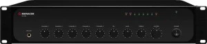 Wzmacniacz miksujący PA, mono, 240WRMS · 3 wejścia mikrofonowe, jedno symetryczne · Wejście priorytetowe mic/line 1 z automatyczną funkcją talkover · 2 wejścia liniowe stereo · 1 wejście telefoniczne do podłączania centralki z wyjściem audio · Wyjścia głośnikowe na terminalach śrubowych · 1 wyjście liniowe · Regulatory poziomu wejściowego i wyjściowego · 2-punktowy korektor barwy dla wyjścia · Zasilanie phantom 48V dla mikrofonów elektretowych na kanale 1, wyłączane · Montaż w racku 482mm (19"), w komplecie uchwyty montażowe Moc szczytowa (peak) 340 W Moc znamionowa RMS 240 W Moc znamionowa RMS przy 4Ω 240 W Moc znamionowa RMS przy 8Ω 120 W Moc znamionowa RMS przy 16Ω 60 W Moc znamionowa RMS przy 100V 240 W Kanały wejściowe kanały wejściowe:1 kanały wyjściowe: 6 Wejścia 5mV/600Ω (mic), 350mV/10kΩ (aux), 1V/10kΩ (telefon) Pasmo przenoszenia 50-16 000 Hz Korektor niskie ±10dB/100Hz Korektor wysokie ±10dB/10kHz Stosunek S/N 66dB (mic) 80dB (aux) THD