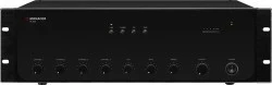Wzmacniacz miksujący PA, mono, 480WRMS · 4 symetryczne wejścia mikr./linia z wyborem priorytetu · 4 wejścia liniowe stereo · Wyjście głośnikowe na terminalach śrubowych · Symetryczne wyjście liniowe · Wyjście REC · Możliwość podłączenia urządzenia efektowego lub eliminatora sprzężeń · Gong 2 lub 4-tonowy, możliwość zdalnego wyzwalania · Regulacja wzmocnienia wejściowego i wyjściowego · 2-punktowy korektor barwy dla wyjścia · Zasilanie phantom 48V dla mikrofonów elektretowych · Sterowany temperaturowo wentylator · Zasilanie sieciowe lub awaryjne 24V · Montaż w racku 482mm (19"), w komplecie uchwyty montażowe Moc szczytowa (peak) 680 W Moc znamionowa RMS 480 W Moc znamionowa RMS przy 4Ω 480 W Moc znamionowa RMS przy 100V 480 W Kanały wejściowe 5 Wejścia 2.5-100mV (mic), 350mV (line) Pasmo przenoszenia 50-16 000 Hz Korektor niskie ±10dB/100Hz Korektor wysokie ±10dB/10kHz Stosunek S/N > 75 dB THD