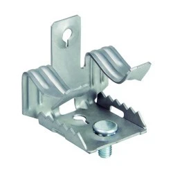 Metalowy klips CELO do belek 3-7mm. Zawiera śrubę metryczną M6x19 mm do mocowania obejm M6 lub nakrętek łączących M6. Ten system klipsów nie wymaga wiercenia ani spawania, a mocowanie jest szybkie i solidne.