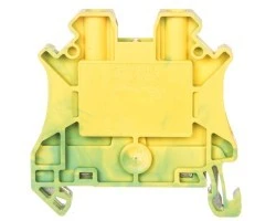 Zacisk przewodu ochronnego, rodzaj przyłącza: Przyłącze śrubowe, ilość przyłączy: 2, przekrój: 0,14 mm² - 6 mm², AWG: 26 - 10, szerokość: 6,2 mm, wysokość: 46,9 mm, kolor: zielono-żółty, rodzaj montażu: NS 35/7,5, NS 35/15