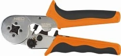 Wyspecjalizowane narzędzie posiadające duży zakres zaciskania, przeznaczone dotulejek ośrednicach od0,25do 6mm2. Zaciskarka wykonana znajlepszej jakości materiałów, czego potwierdzeniem jest 25‑letnia gwarancja, oferowana przez markę NEO. Dwumateriałowy, ergonomiczny uchwyt zapewnia komfort użytkowania.