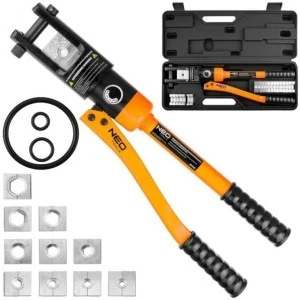 Zaciskarka hydrauliczna NEO 01-543 to profesjonalne narzędzie do zaciskania końcówek na przewodach elektrycznych. Wyposażona w siłownik hydrauliczny praska, umożliwia precyzyjne i skuteczne zaciskanie bez większego wysiłku.