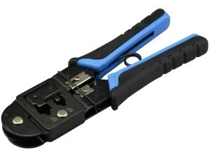 Profesjonalna zaciskarka wtyków modularnych, służąca do zaciskania na przewodzie wtyków 8 pinowych, 6 pinowych i 4 pinowych.