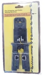 Zaciskarka złaczy, obcinarka i ściągacz izolacji do przewodów płaskich i okrągłych w jednym z możliwością przypięcia do paska. Wbudowany mechanizm blokady powrotu, ramiona o długości 19 cm.