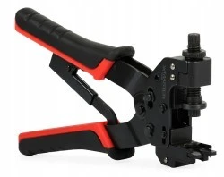- zaciska złącza kompresyjne proste oraz kątowe typu: F, RCA, BNC, IEC,