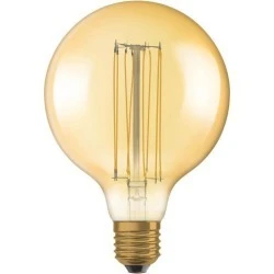 Żarówka dekoracyjna LED w kształcie Globe to najnowszy produkt renomowanej i uznanej w branży oświetleniowej firmy OSRAM. Żarówka LED w stylu VINTAGE 1906 z trzonkiem E27 to wysokiej jakości źródło światła LED zamknięte w szklanej bańce o eleganckim kształcie. Prezentowana filamentowa żarówka świetnie sprawdzi się jako oświetlenie dekoracyjne w naszych domach lub mieszkaniach. Jej klasyczny wygląd sprawi, że twoje gniazdko nabierze przytulnego charakteru, a wzrok odpocznie przy przyjemnym dla oka świetle. Żarówka została wyprodukowana przy wykorzystaniu najnowszych technologii energooszczędnych diod LED, które charakteryzują się wysoką wydajnością parametrów świetlnych oraz wyjątkowo długą trwałością.