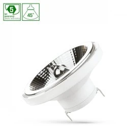 Źródło LED AR111 G53 14 W. Wykonane jest z komponentów o wysokiej jakości, potwierdzonej 5 letnią gwarancją. Świeci światłem o ciepłej barwie (3000K), które sprzyja relaksowaniu się i odpoczynkowi, sprawiając że oświetlane pomieszczenie jest bardziej przytulne. Wąski kąt świecenia 45° daje kierunkowe światło, dzięki czemu można lepiej wyeksponować wybrane przedmioty lub powierzchnie.