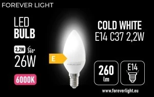 Żarówka LED E14 C37 2.2W 260lm 6000K klasa E Forever Light