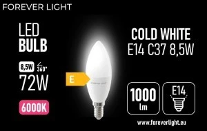 Żarówka LED E14 C37 8.5W 1000lm 6000K klasa E Forever Light