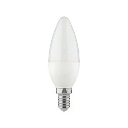 Lampa z diodami LED SMD, zasilanie 220-240V~; 50Hz, moc 4,5W, źródło światła LED SMD, trzonek E14, Tc 4000K, strumień świetlny 470lm, Ra 80, trwałość 15000h, ilość cykli włącz/wyłącz 25000.