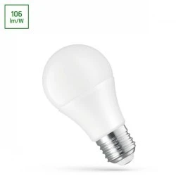 Źródło LED GLS 8,5 W o trzonku E-27 oraz o kształcie tradycyjnej żarówki. Charakteryzuje się wysoką skutecznością świetlną 106 lm/W. Świeci światłem o zimnej barwie (6000K), która sprawdzi się w pomieszczeniach, w których musimy być najbardziej skupieni i skoncentrowani, np. na technicznych stanowiskach pracy.