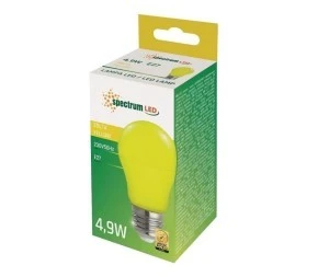 Wysokiej jakości Żarówka LED z trzonkiem E27. Żarówka pozwala na uzyskanie żółtej barwy światła i znaczne zmniejszenie zużycia energii w porównaniu do tradycyjnych żarówek.