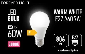 Żarówka LED E27 A60 7W 806lm 3000K klasa E Forever Light