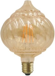 Żarówka dekoracyjna LED Vintage Amber BC125 renomowanej i uznanej w branży oświetleniowej firmy Goldlux z trzonkiem E27 i mocy wynoszącej 4W (odpowiednik klasycznej żarówki o mocy 30W) to wysokiej jakości źródło światła LED. Dzięki swojemu nowoczesnemu kształtowi gdzie diody uformowane są na wzór tradycyjnych włókien żarowych żarówek, a kształt tradycyjny typu Kulista BC125 , seria żarówek FILAMENT doskonale nadaje się jako oświetlenie dekoracyjne w Twoim mieszkaniu. Ich rustykalny wygląd sprawi, że Twoje mieszkanie nabierze przytulnego charakteru, a wzrok odpocznie. Lampa została wykonana przy użyciu nowoczesnych rozwiązań wykorzystujących nowoczesną technologię diod LED, które charakteryzują się wysoką wydajnością parametrów świetlnych, wiernym odwzorowaniem kolorów oświetlanych przedmiotów oraz wyjątkowo długą trwałością, która wynosi nawet 25000 godzin.