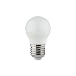 Lampa z diodami LED SMD, zasilanie 220-240V~; 50/60Hz, moc 4,5W, ekwiwalent 4,5W-40W, źródło światła LED SMD, trzonek E27, Tc 4000K, strumień świetlny 470lm, Ra 80, trwałość 15000h, ilość cykli włącz/wyłącz 25000.