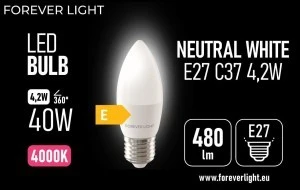 Żarówka LED E27 C37 4.2W 480lm 4000K klasa E Forever Light