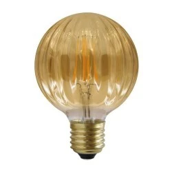 Żarówka dekoracyjna LED Vintage Amber G100 renomowanej i uznanej w branży oświetleniowej firmy Goldlux z trzonkiem E27 i mocy wynoszącej 4W (odpowiednik klasycznej żarówki o mocy 38W) to wysokiej jakości źródło światła LED. Dzięki swojemu oryginalnemu kształtowi Kulista G100, seria żarówek FILAMENT doskonale nadaje się jako oświetlenie dekoracyjne. Ich rustykalny wygląd sprawi, że Twoje mieszkanie nabierze przytulnego charakteru, a wzrok odpocznie. Lampa wykonana została przy użyciu nowoczesnych rozwiązań wykorzystujących nowoczesną technologię diod LED, które charakteryzują się wysoką wydajnością parametrów świetlnych, wiernym odwzorowaniem kolorów oświetlanych przedmiotów oraz wyjątkowo długą trwałością, która wynosi nawet 25000 godzin.