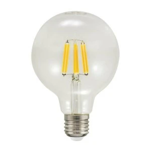 Żarówka G95 FILAMENT renomowanej i uznanej w branży oświetleniowej firmy POLUX z trzonkiem E27 i mocy wynoszącej 7,5W (odpowiednik klasycznej Żarówki o mocy 75W) to wysokiej jakości źródło światła LED. Lampa wykonana została przy użyciu nowoczesnych rozwiązań wykorzystujących innowacyjną technologię diod LED, które charakteryzują się wysoką wydajnością parametrów świetlnych, wiernym odwzorowaniem kolorów oświetlanych przedmiotów oraz wyjątkowo długą trwałością.