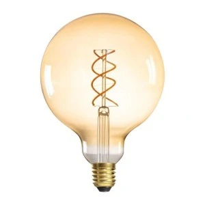 Źródło światła LED, Średnica [mm]: 125, Wysokość [mm]: 178, Typ: ZrodlaLED, Barwa światła: super ciepła, Czas nagrzewania się lampy do 60% pełnego strumienia świetlnego [s]: pomijalny, Czas nagrzewania się lampy do 95% [s]: <2, Czas zapłonu [s]: ≤0,5, Częstotliwość znamionowa [Hz]: 50, Ilość cykli wł/wył: ≥20000, Jednolitość barw [SDCM]: ≤6, Kolor: bursztynowy, Lampa jest przeznaczona do oświetlenia akcentowego: nie dotyczy, Materiał klosza: szkło, Moc znamionowa [W]: 4, Możliwość współpracy ze ściemniaczem: nie, Napięcie znamionowe [V]: 220-240 AC, Nominalny kąt promieniowania [°]: 320, Prąd znamionowy lampy [mA]: 38, Zużycie energii w trybie włączenia [kWh]/1000h: 4, Rodzaj diody: LED FILAMENT, Temperatura barwowa [K]: 1800, Trzonek: E27, Wskaźnik przedwczesnego końca eksploatacji lampy: <5% po 1000h, Współczynnik mocy lampy: 0.5, Współczynnik oddawania barw Ra: 80, Współczynnik trwałości lampy po okresie 6000h [%]: ≥90, Współczynnik zachowania strumienia świetlnego na zakończenie nominalnego okresu trwałości [%]: ≥70, Współczynnik zachowania strumienia świetlnego po okresie 6000h [%]: ≥80, Zawartość rtęci: nie, Znamionowa trwałość lampy [h]: 15000, Znamionowy kąt promieniowania [°]: 320, Źródło światła: G125, Kształt zarówki: globe, Zastosowana technologia oświetleniowa: LED, Bezkierunkowe lub kierunkowe źródło światła: NDLS, Źródło światła zasilane lub niezasilane napięciem sieciowym: MLS, Połączone źródło światła (CLS): nie, Źródło światła z możliwością zmiany barwy światła: nie, Źródło światła o wysokiej luminancji: nie, Osłona przeciwolśnieniowa: nie, Funkcja ściemniania: nie, Zużycie energii w trybie włączenia (kWh/1000h): 4, Użyteczny strumień świetlny źródła światła Φuse [lm]: 250, Użyteczny strumień świetlny źródła światła Φuse [lm]: w kuli (360°), Moc w trybie włączenia Pon [W]: 4, Wartość wskaźnika oddawania barw R9: 19, Współczynnik zachowania strumienia świetlnego: 0,93, Źródło światła LED zastępuje fluorescencyjne źródło światła bez wbudowanego statecznika: nie dotyczy, Wskaźnik migotania (Pst LM): 1,0, Wskaźnik efektu stroboskopowego (SVM): 0.4, Deklaracja równoważności mocy [W]: 25.