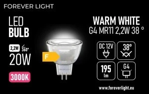 Żarówka LED G4 MR11 38 2.2W 195lm 3000K 12V szklana klasa F Forever Light