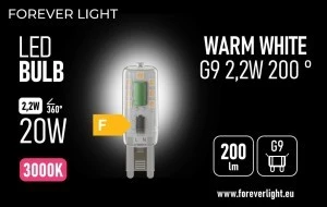 Żarówki LED Forever Light G9 to kompaktowe i praktyczne źródła światła, które idealnie sprawdzają się w nowoczesnych lampach i oprawach dekoracyjnych. Model o mocy 2.2W generuje strumień świetlny 200 lm, co zapewnia jasne, równomierne oświetlenie przy niskim zużyciu energii. Dzięki niewielkim wymiarom świetnie pasuje do lamp o ograniczonej przestrzeni montażowej.