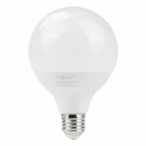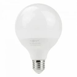 Żarówka LED G95 E27 20W 6500K Uzyskaj jasne i wyraziste oświetlenie dzięki żarówce LED G95 E27 20W 6500K. Dzięki chłodnej białej barwie światła i nowoczesnym parametrom technicznym jest doskonałym wyborem do miejsc wymagających precyzyjnego oświetlenia. Najważniejsze cechy: Mocne i jasne światło: Żarówka o mocy 20W generuje strumień świetlny 1800 lm, idealny do intensywnego oświetlenia przestrzeni. Chłodna biała barwa (6500K): Zapewnia jasne, dzienne światło, które idealnie nadaje się do biur, warsztatów, garaży oraz miejsc wymagających maksymalnej widoczności. Estetyczny design: Mleczny klosz w kształcie kuli (Globe) równomiernie rozprasza światło, eliminując efekt olśnienia. Wszechstronność zastosowania: Standardowy gwint E27 sprawia, że żarówka pasuje do większości opraw oświetleniowych. Wysoka jakość odwzorowania kolorów (CRI ≥80): Gwarantuje realistyczne i naturalne barwy w oświetlonym otoczeniu. Efektywność energetyczna: Klasa energetyczna F i współczynnik mocy (PF >0.5) pozwalają na oszczędność energii przy dużej wydajności. Trwałość i niezawodność: Wykonana z tworzywa sztucznego, żarówka jest wytrzymała i objęta 2-letnią gwarancją. Specyfikacja techniczna: Temperatura barwowa: 6500K Strumień świetlny: 1800 lm Kąt świecenia: 220° Wymiary: 95 x 142 mm Napięcie wejściowe: 220-240V AC Opakowanie: Produkt jest dostępny w kartonach zbiorczych po 50 sztuk, co czyni go doskonałym wyborem zarówno dla klientów detalicznych, jak i hurtowych. Wybierz żarówkę LED G95 E27 20W 6500K, aby wprowadzić jasne i efektywne oświetlenie do swojego otoczenia.