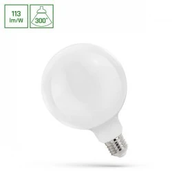 Źródło LED GLOB 11 W o trzonku E-27 oraz o kształcie dużej kuli, który świetnie sprawdzi się w otwartych lampach oraz zwieszanych bez klosza. Charakteryzuje się wysoką skutecznością świetlną 113 lm/W. Jest jeszcze bardziej energooszczędne dzięki zastosowaniu trwałych filamentów COG, które zużywają bardzo mało energii elektrycznej. Szeroki kąt świecenia 300° zapewnia równomierne oświetlenie pomieszczeń.