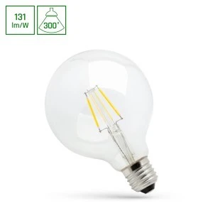 Źródło LED GLOB 8 W o trzonku E-27 oraz o kształcie dużej szklanej kuli, który świetnie sprawdzi się w otwartych lampach oraz zwieszanych bez klosza. Charakteryzuje się wysoką skutecznością świetlną 131 lm/W. Jest jeszcze bardziej energooszczędne dzięki zastosowaniu trwałych filamentów COG, które zużywają bardzo mało energii elektrycznej. Świeci światłem o neutralnej - najbardziej uniwersalnej barwie (4000K), która sprawdzi się w pomieszczeniach, z których korzystamy na codzień, zapewniając komfort podczas codziennych czynności. Szeroki kąt świecenia 300° zapewnia równomierne oświetlenie pomieszczeń.