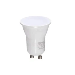 Lampa z diodami LED, zasilanie 220-240V~; 50Hz, moc 2,2W, źródło światła LED SMD, trzonek GU10, Tc 3000K, strumień świetlny 180lm, kąt rozsyłu światłości 120°, Ra ≥80, trwałość 15000h, ilość cykli włącz/wyłącz 15000, Ei A++.