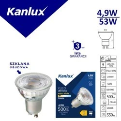 Źródło światła LED, Głębokość [mm]: 50, Szerokość [mm]: 50, Średnica [mm]: 50, Wysokość [mm]: 53, Barwa światła: ciepłobiała, Czas nagrzewania się lampy do 60% pełnego strumienia świetlnego [s]: pomijalny, Czas nagrzewania się lampy do 95% [s]: <2, Czas zapłonu [s]: ≤0,5, Częstotliwość znamionowa [Hz]: 50, Deklaracja równoważności dotycząca mocy [W]: 44, Ilość cykli wł/wył: ≥40000, Jednolitość barw [SDCM]: 6, Kolor: srebrny, Materiał: szkło, Materiał klosza: tworzywo sztuczne, Moc znamionowa [W]: 4,9, Możliwość współpracy ze ściemniaczem: nie, Napięcie znamionowe [V]: 220-240 AC, Prąd znamionowy lampy [mA]: 40, Zużycie energii w trybie włączenia [kWh]/1000h: 5, Rodzaj diody: LED SMD, Skuteczność świetlna lampy [lm/W]: 112, Temperatura barwowa [K]: 3000, Trzonek: GU10, Wskaźnik przedwczesnego końca eksploatacji lampy: <5% po 1000h, Współczynnik oddawania barw Ra: 80, Współczynnik trwałości lampy po okresie 6000h [%]: ≥90, Współczynnik zachowania strumienia świetlnego na zakończenie nominalnego okresu trwałości [%]: ≥70, Współczynnik zachowania strumienia świetlnego po okresie 6000h [%]: ≥80, Zawartość rtęci: nie, Znamionowa trwałość lampy [h]: 25000, Znamionowy kąt promieniowania [°]: 100, Całkowity znamionowy strumień świetlny [lm]: 550, Źródło światła: PAR16, Kształt zarówki: spot, Zastosowana technologia oświetleniowa: LED, Bezkierunkowe lub kierunkowe źródło światła: DLS, Źródło światła zasilane lub niezasilane napięciem sieciowym: MLS, Połączone źródło światła (CLS): nie, Źródło światła z możliwością zmiany barwy światła: nie, Źródło światła o wysokiej luminancji: nie, Osłona przeciwolśnieniowa: nie, Funkcja ściemniania: nie, Zużycie energii w trybie włączenia (kWh/1000h): 5, Klasa efektywności energetycznej: E, Użyteczny strumień świetlny źródła światła Φuse [lm]: 500, Użyteczny strumień świetlny źródła światła Φuse [lm]: w szerokim stożku (120°), Moc w trybie włączenia Pon [W]: 4,9, Wartość wskaźnika oddawania barw R9: 6, Współczynnik zachowania strumienia świetlnego: 0,96, Źródło światła LED zastępuje fluorescencyjne źródło światła bez wbudowanego statecznika: nie dotyczy, Wskaźnik migotania (Pst LM): 1,0, Wskaźnik efektu stroboskopowego (SVM): 0,4, Deklaracja równoważności mocy [W]: 53.