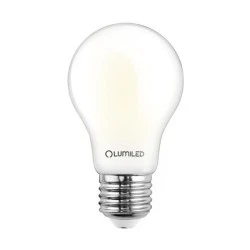 Żarówka LED LUMILED A60 Filament z trzonkiem E27 to energooszczędne źródło światła do codziennego użytku w domu i biurze. Zapewnia jasność porównywalną z tradycyjną żarówką 60 W, jednocześnie zużywając znacznie mniej energii dzięki najwyższej efektywności w klasie energetycznej: A. Neutralna barwa światła sprzyja koncentracji i wiernemu postrzeganiu kolorów, a pełny kąt świecenia równomiernie doświetla pomieszczenie.