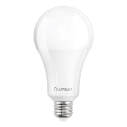 Żarówka LED Lumiled z gwintem E27 zapewnia bardzo mocny, równomierny blask przy niskim poborze energii. Zimna biel 6500 K sprzyja dobrej widoczności i wyraźnemu odbiorowi barw w pomieszczeniach roboczych, gospodarczych i w domu. Model w formie A70 dobrze sprawdza się jako główne źródło oświetlenia w oprawach z dużym kloszem.