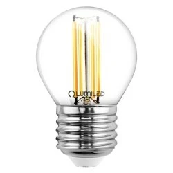 Żarówka LED Lumiled w kształcie kulki P45 to dekoracyjne źródło światła z widocznym filamentem, przeznaczone do opraw wewnętrznych. Zapewnia przyjemną, domową atmosferę dzięki barwie 2700K (biała ciepła) oraz równomiernemu rozsyłowi światła 360°, dlatego sprawdza się w lampach stołowych, kinkietach i oprawach z przezroczystym kloszem. Wysoka efektywność potwierdzona klasą energetyczną A pozwala uzyskać jasność 470 lm przy niskim poborze mocy 2,2W, co odpowiada tradycyjnej żarówce 40W.