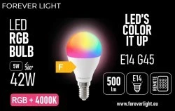 Żarówka LED RGB + NEUTRAL WHITE E14 G45 5W 500lm 4000K klasa F Forever Light