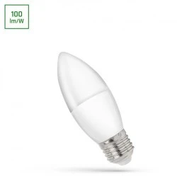 Źródło LED ŚWIECZKA LED 1 W o trzonku E-27 oraz o kształcie 'świeczki'. Charakteryzuje się wysoką skutecznością świetlną 100 lm/W. Jest wyjątkowo oszczędne w eksploatacji - ich moc to 1 W. Świeci światłem o zimnej barwie (6000K), która sprawdzi się w pomieszczeniach, w których musimy być najbardziej skupieni i skoncentrowani, np. na technicznych stanowiskach pracy. Szeroki kąt świecenia 270° zapewnia równomierne oświetlenie pomieszczeń.
