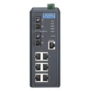 EKI-7708G-2SI to zarządzalny switch firmy Advantech wyposażony w 6 portów gigabit ze złączem RJ-45 i 2 porty światłowodowe jednomodow gigabit ze złączem SC o zasięgu 10 kilometrów. Switch został przystosowany do pracy w trudnych warunkach przemysłowych, przy temperaturze od -40 do 75 °C. Dodatkowo, funkcja IXM pozwala na szybką i grupowa konfiguracje wielu switchy jednocześnie, co znacznie skraca czas i koszty instalacji. EKI-7708G-2SI wspiera również systemy NMS, które znacząco pomagają w diagnozie i utrzymaniu sieci. Wreszcie, switch wspiera szereg funkcji i protokołów warstwy drugiej, takich jak X-Ring Pro, który zapewnia redundancję i rekonfigurację sieci w postaci pierścienia w czasie 20 ms, przy podłączonych 250 jednostkach