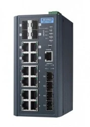 EKI-7716G-4F4C to zarządzalny switch firmy Advantech wyposażony w 8 gigabitowych portów Ethernet i 8 światłowodowych SFP, z czego 4 może pracować naprzemiennie jako gigabitowe RJ-45. W zależności od dobranej wersji wkładki SFP porty mogą być wykorzystywane do połączenia światłowodowego na dystansie do kilkudziesięciu kilometrów. Switch został przystosowany do pracy w trudnych warunkach przemysłowych, przy temperaturze od -40 do 75 °C w wersji rozszerzonej. Dodatkowo, funkcja IXM pozwala na szybką i grupowa konfiguracje wielu switchy jednocześnie, co znacznie skraca czas i koszty instalacji. EKI-7716G wspiera systemy NMS, które znacząco pomagają w diagnozie i utrzymaniu sieci. Wreszcie, switch ma szereg funkcji i protokołów warstwy drugiej, takich jak X-Ring Pro, który zapewnia redundancję i rekonfigurację sieci w postaci pierścienia w czasie 20 ms, przy podłączonych 250 jednostkach. Przełącznik spełnia również normę transportową NEMA TS2, dzięki czemu jest idealnym rozwiązaniem do zastosowań w ruchu drogowym. Ma także europejską normę kolejową EN50121-4 w zakresie emisji i odporności na zakłócenia elektromagnetyczne, dedykowaną dla platform kolejowych i rozmieszczania przytorowego.