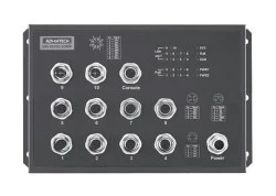 8 portów Fast Ethernet PoE/PoE+ ze złączem M12 (4 piny, żeńskie, D-code)