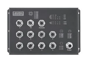 EKI-9510E-2GMP to nowy zarządzalny switch firmy Advantech dedykowany do rozwiązań kolejowych zgodnie z normą EN50155. Urządzenie oferuje szeroki zakres temperatury pracy od -40 do 70°C. Switch wyposażony jest w 2 porty Gigabit oraz 8 portów Fast Ethernet ze złączem M12 zgodnych ze standardem PoE/PoE+, które skutecznie zabezpiecza połączenie w przypadku występowania silnych drgań na podłożu. Stabilność pracy poszerza również redundantny protokół Advantech X-Ring Pro, umożliwiający działanie w topologii pierścienia oraz zapewniający rekonfigurację połączenia w czasie krótszym niż 20 ms przy 250 punktach. Jest to bardzo przydatna funkcja dająca maksymalne bezpieczeństwo we wszelkiego rodzaju zastosowaniach w pociągach czy stacjach kolejowych. Do optymalizacji sieci może posłużyć także szereg mechanizmów i protokołów takich jak IGMP Snooping, Port Trunking, VLAN, SNMP V1/V2c/V3, QoS, Syslog i inne. EKI-9510E-2GMP może być zasilany redundantnym napięciem z zakresu 24 / 48 VDC lub 72 / 96 / 110 VDC. Wszystkie gniazda M12 zostały solidnie zabezpieczone przed działaniem wilgoci oraz skrajnych temperatur. Dodatkowo zgodność z normą kolejową gwarantuje stabilną prace w otoczeniu silnych zakłóceń magnetycznych.