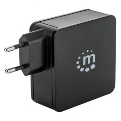 Manhattan 180214 - Zasilacz Sieciowy 230V, Ładowarka USB-C Power Delivery 60W 3-20V 3A max. z Portem USB-A 5V 2.4A Czarny