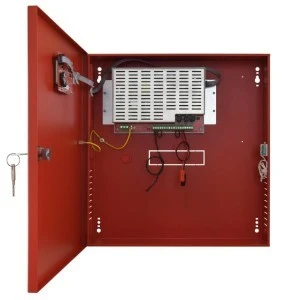 Zasilanie 230 V AC Wyjście zasilania 5 A / 27.6 V DC / 142 W - dla pracy chwilowej – Imax b (5min) 4.2 A / 27.6 V DC - dla pracy ciągłej – Imax a Zgodność z normami Norma pożarowa EN54-4 Norma oddymiania i wentylacji EN12101-10 Certyfikat stałości właściwości użytkowych CNBOP-PIB Nr 1438-CPR-0628 Świadectwo dopuszczenia CNBOP-PIB Nr 5222/2024 Prąd ładowania akumulatora 0.8A Rekomendowany akumulator 2 x 17Ah Pobór prądu przez układy zasilacza 67mA max. Sprawność 87% Wymiary 385 x 402 x 88 [+/-2 mm] dystans od podłoża: 8 mm Zabezpieczenia SCP, OLP, OVP, UVP, tamper – otwarcie obudowy Wyjścia techniczne typu przekaźnikowego EPS – awaria sieci AC ALARM – awaria zbiorcza Wejścia techniczne EXTi – awaria zewnętrzna Zamykanie zamek (1xMR027, ten sam kod) Montaż natynkowy Sygnalizacja wyświetlacz LCD Wykonanie blacha DC01, 1mm, RAL3001 (czerwony), metalowa Stopień ochrony EN60529 IP 30 Gwarancja 3 lata Uwagi - możliwość zdalnego monitoringu przez sieć LAN, RS485 (wymagane odpowiednie moduły)